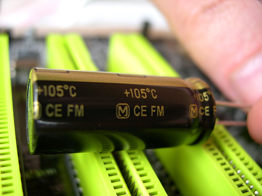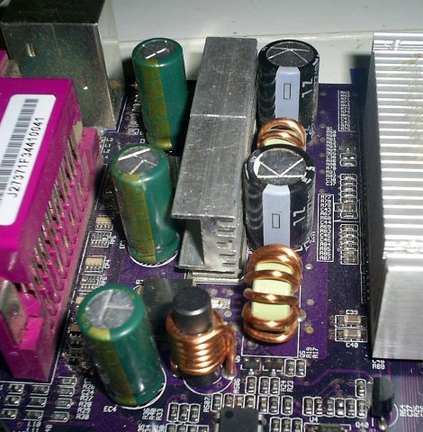 (Photo from an ASUS CUSL2 motherboard, original caps)