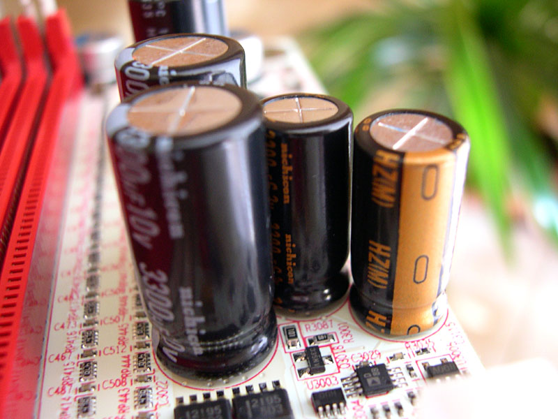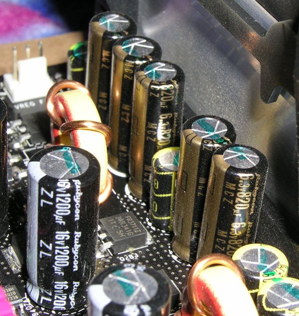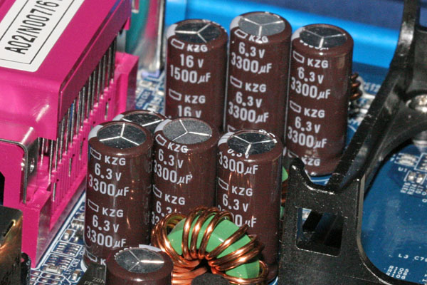 (Photo from Intel D875PBZLK motherboard, original caps)